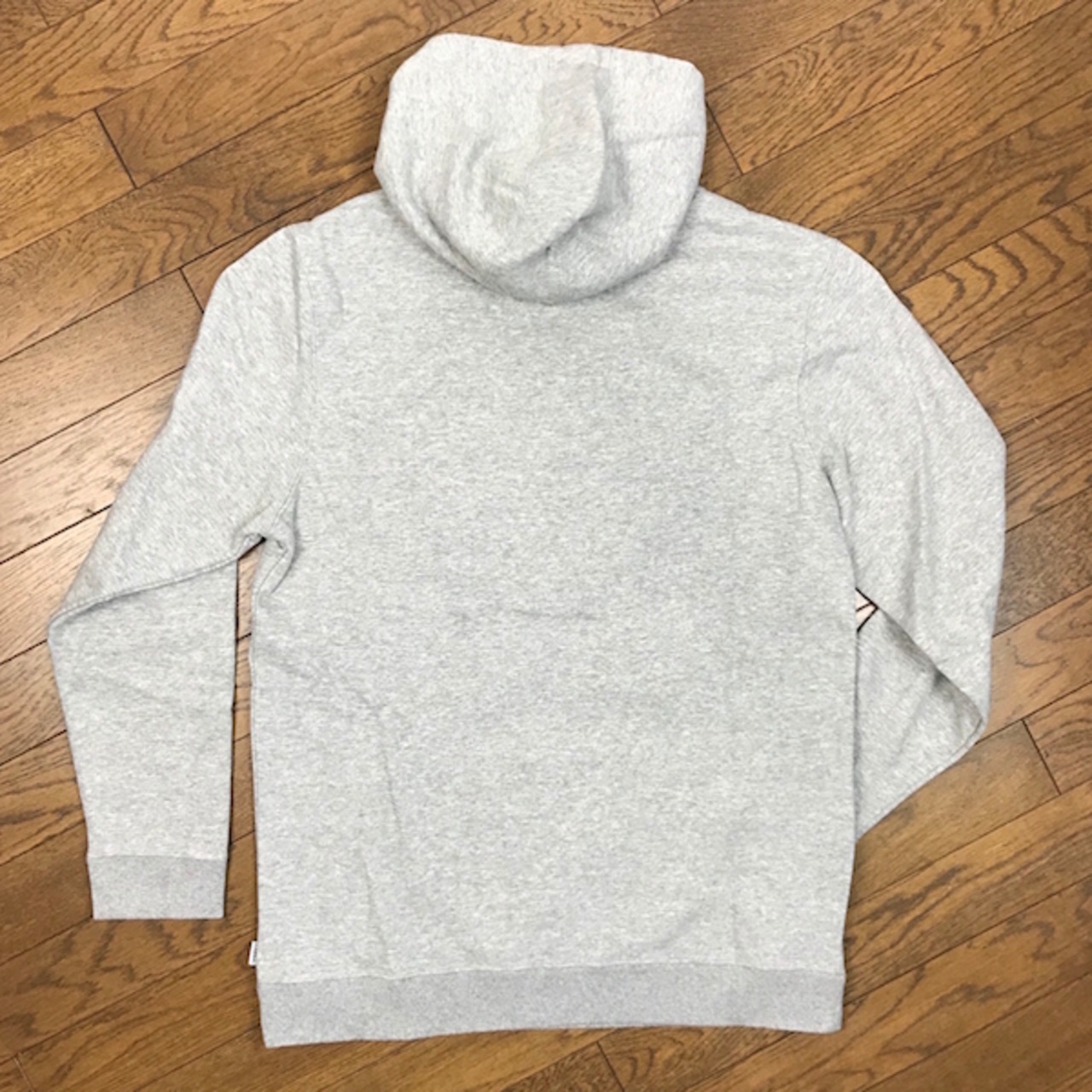 シンプルな胸ロゴ刺繍パーカーはコーディネートを選ばず、1枚あると万能な1着です。
