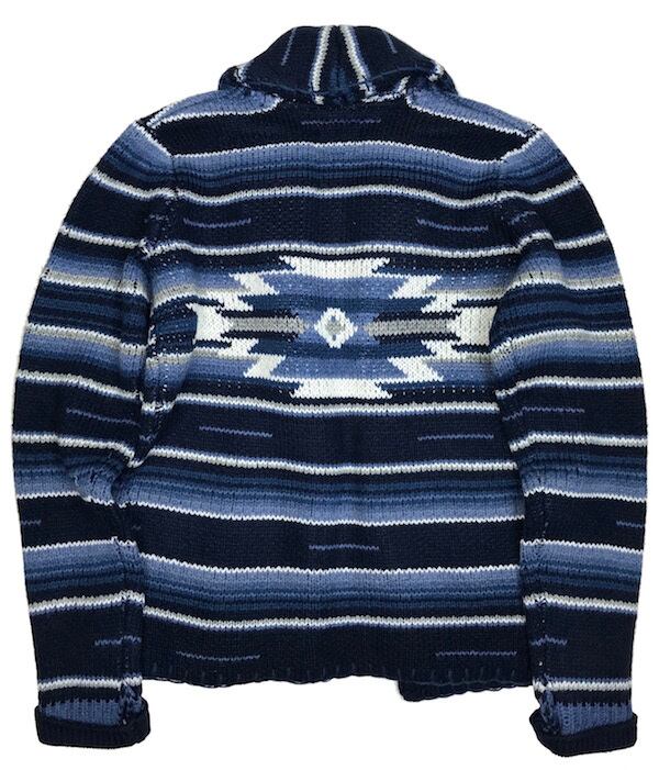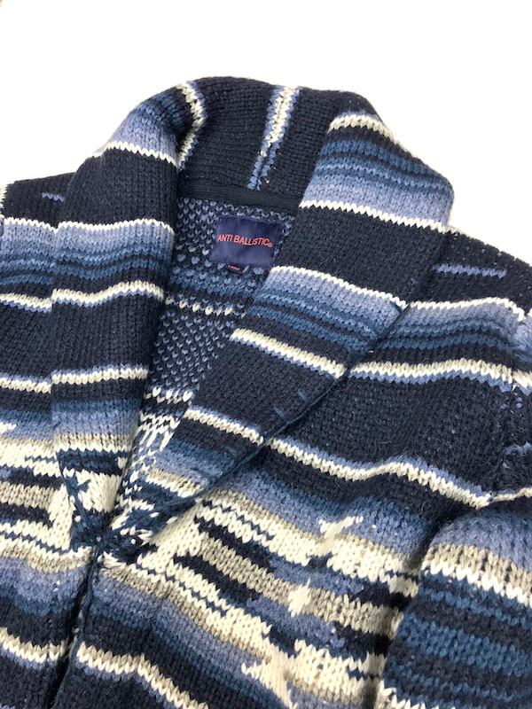 【ANTIBALLISTIC】ショールカラー ニット ネイティブ柄 【ネイビー・紺/ホワイト・白】