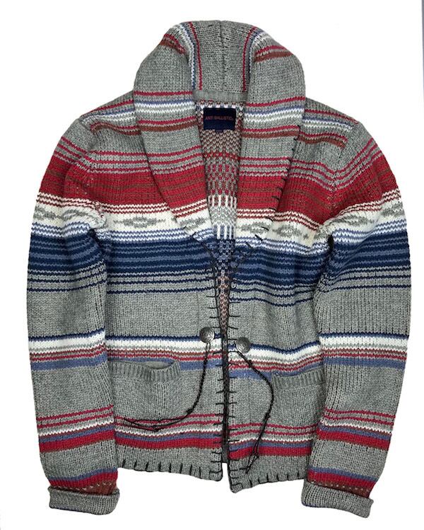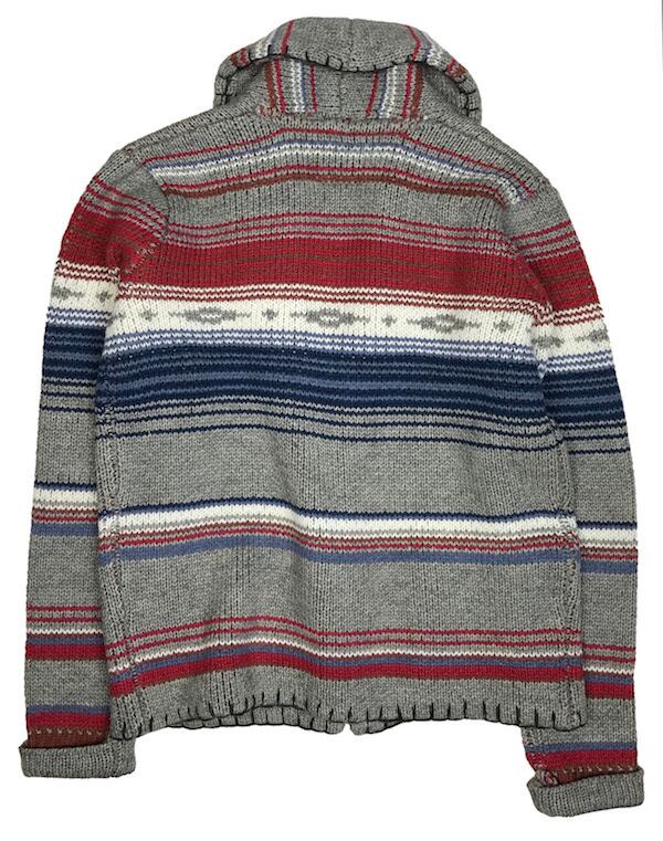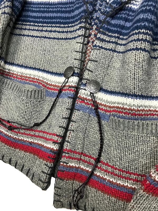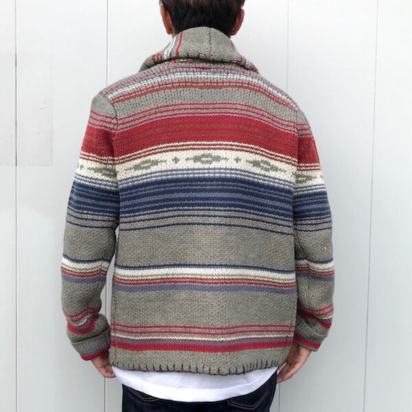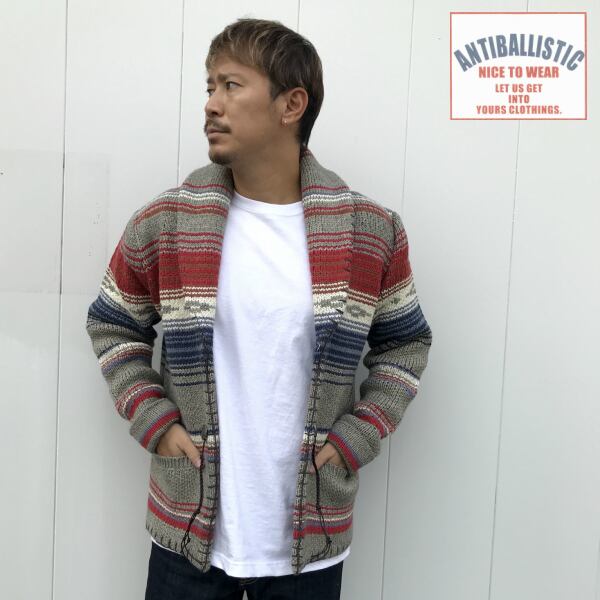 【ANTIBALLISTIC】ショールカラー ニット ネイティブ柄 【グレー/ホワイト・白】