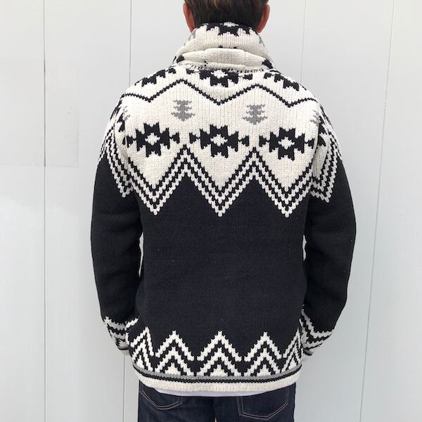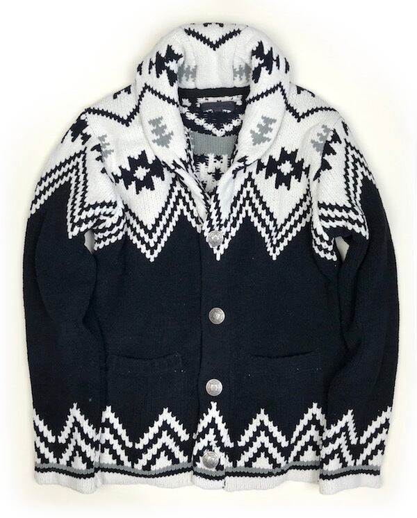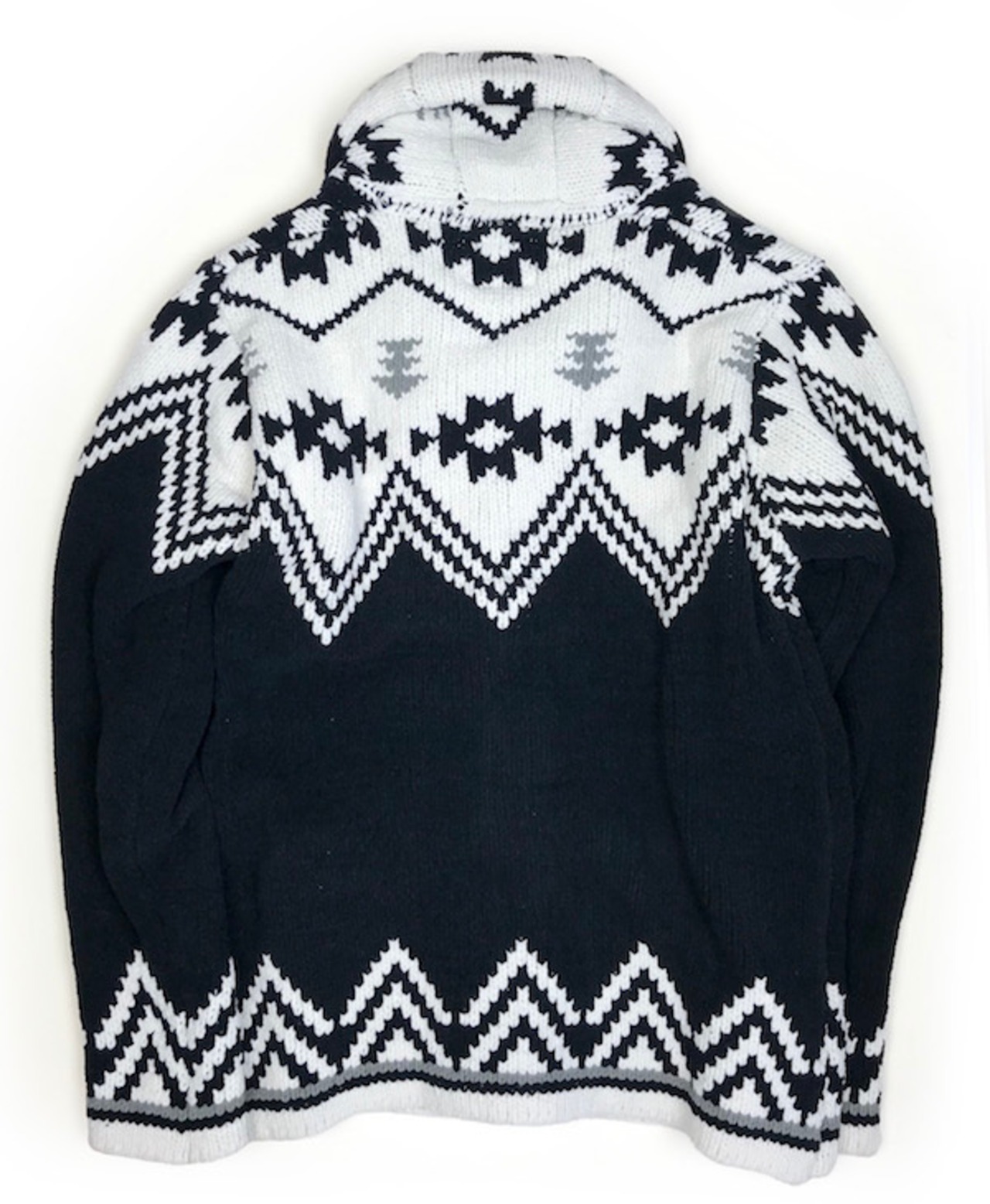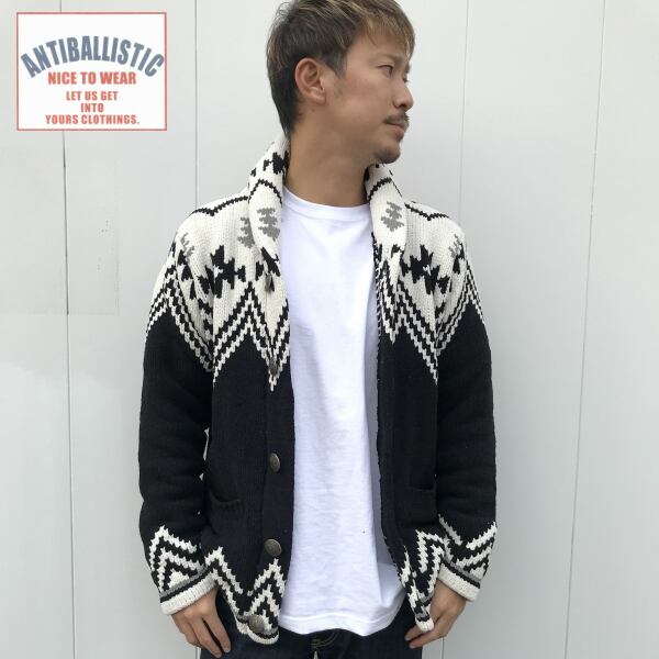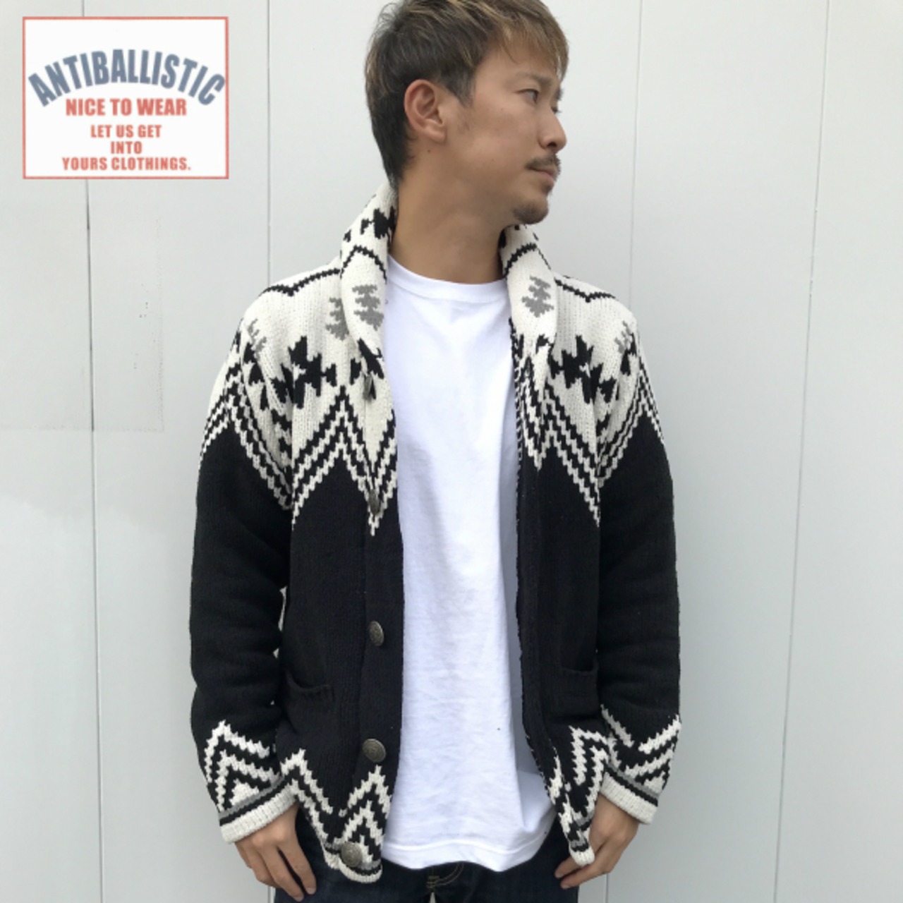 【ANTIBALLISTIC】ショールカラー ニット ネイティブ柄 【ブラック・黒/ホワイト・白】