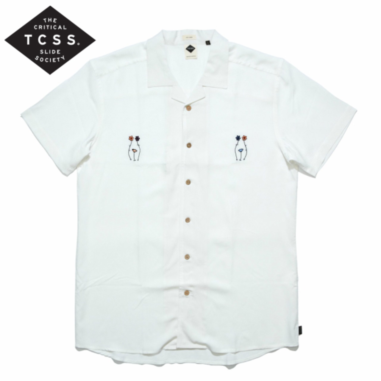 【TCSS(ティーシーエスエス)】半袖刺繍シャツ ワンポイント フラワー【ホワイト/白/WHITE】 アメカジ サーフ 西海岸 SS1845