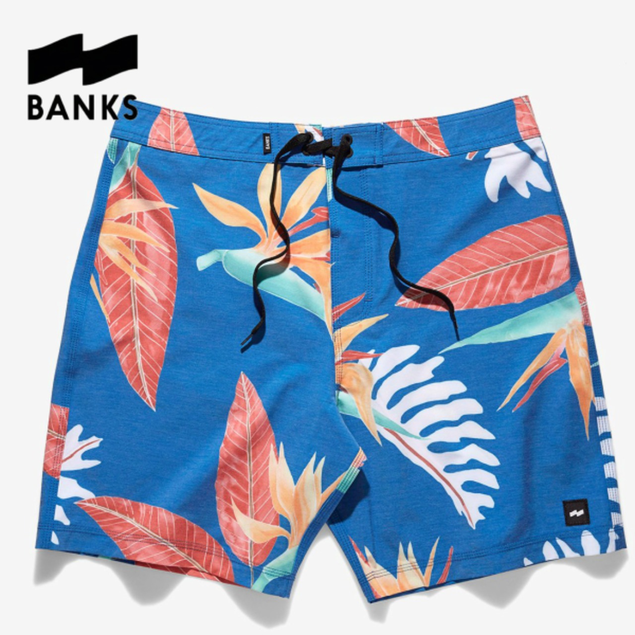 BANKS(バンクス) 花柄ボードショーツ 水着 ハーフパンツ ショーツ アロハシャツ【BLUE/ブルー/青】アメカジ サーフ 西海岸【28/30/32】bs0166