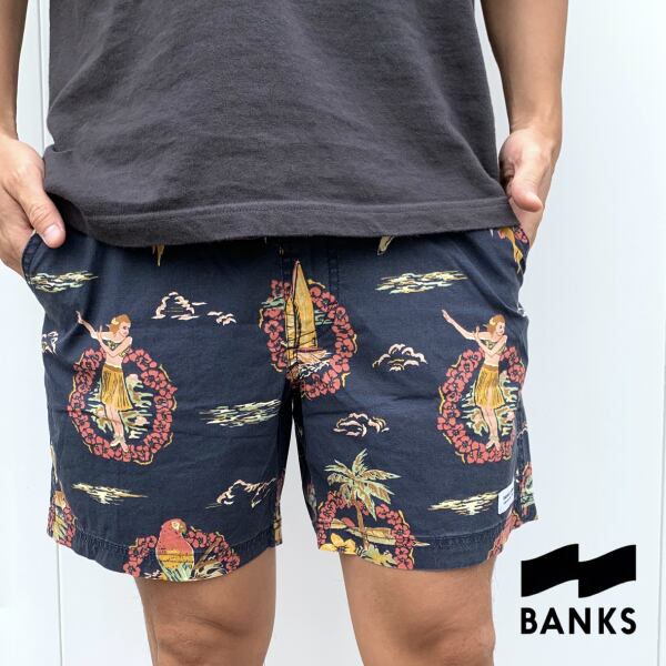 BANKS(バンクス) ボードショーツ ハーフパンツ ショーツ アロハ【ネイビー/紺/NAVY】アメカジ サーフ 西海岸【28/30/32】BS0191 SEASIDE