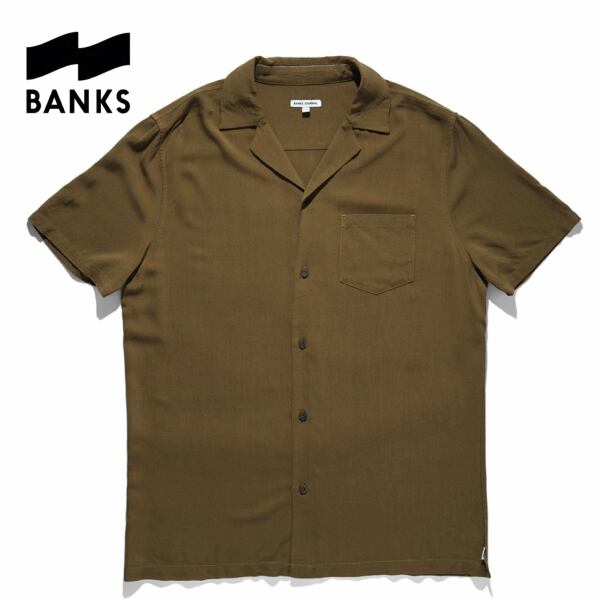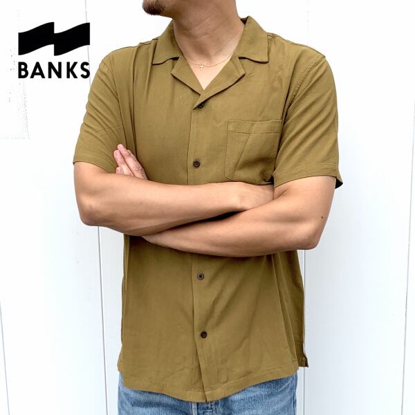 新作 BANKS(バンクス) オープンカラーシャツ 半袖シャツ【カーキ/khaki/緑/olive】アメカジ サーフ 西海岸【M/L】ASS0080
