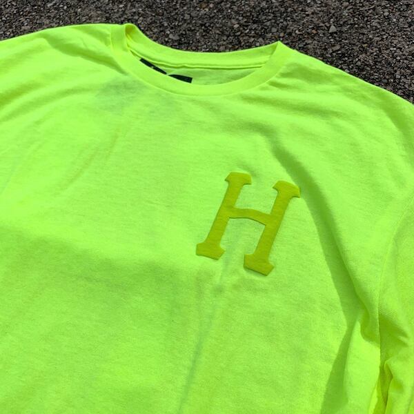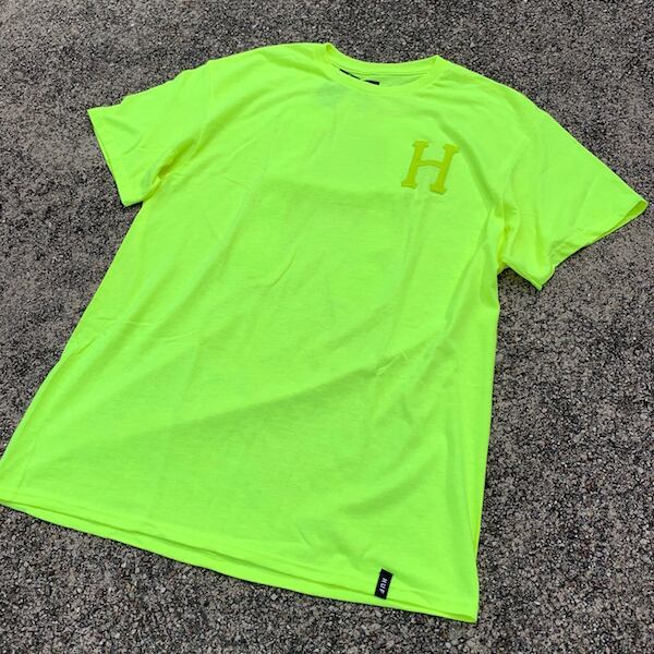 HUF(ハフ) バックロゴTシャツ【NEON YELLOW/ネオン/蛍光イエロー】アメカジ ストリート TS01026